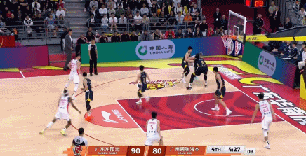 随后,郭艾伦单挑奎恩后撤步投篮三不沾后,被换下休息。