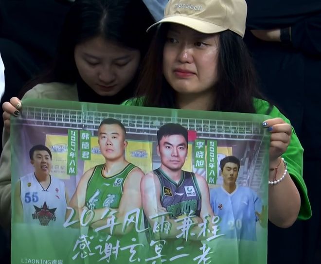 这个时候导播给到了看台上的球迷,我们可以看到她举着韩德君与李晓旭的海报。现在韩德君已经退役,估计李晓旭打完下赛季就要退役了。这样的画面出来,也标志着辽宁黄金一代的落幕。
