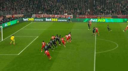 上半场拜仁攻势如潮但颗粒无收,双方半场踢成0-0。