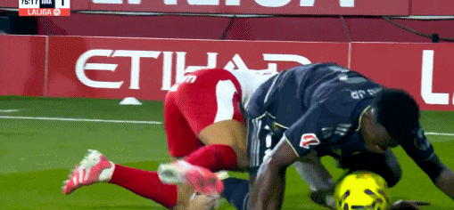 第76分钟,维尼修斯倒地,赫罗纳球迷做出搞怪手势